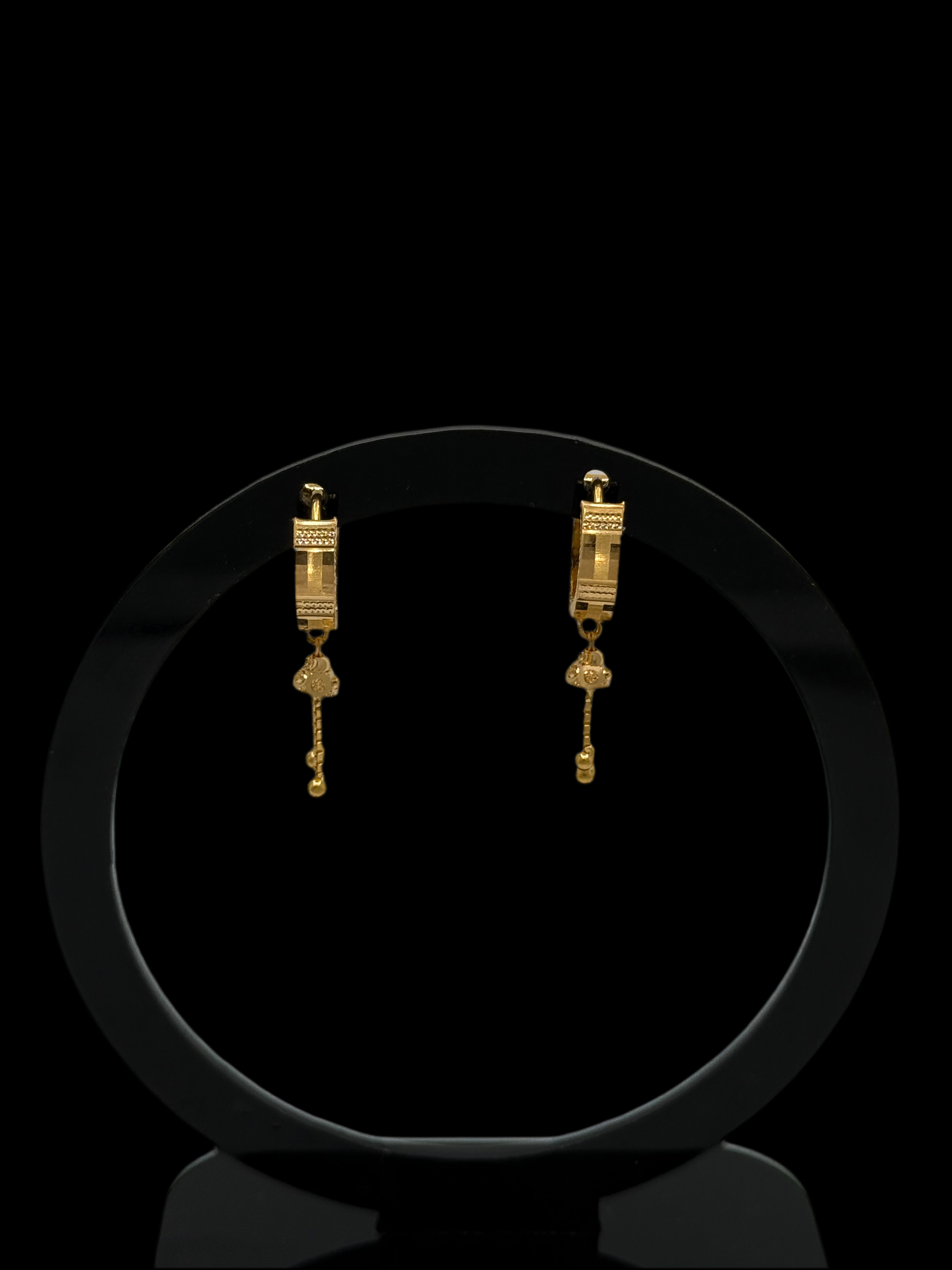 Noir Jewelers 22K Gold earrings small fancy laser cut for youth and adults